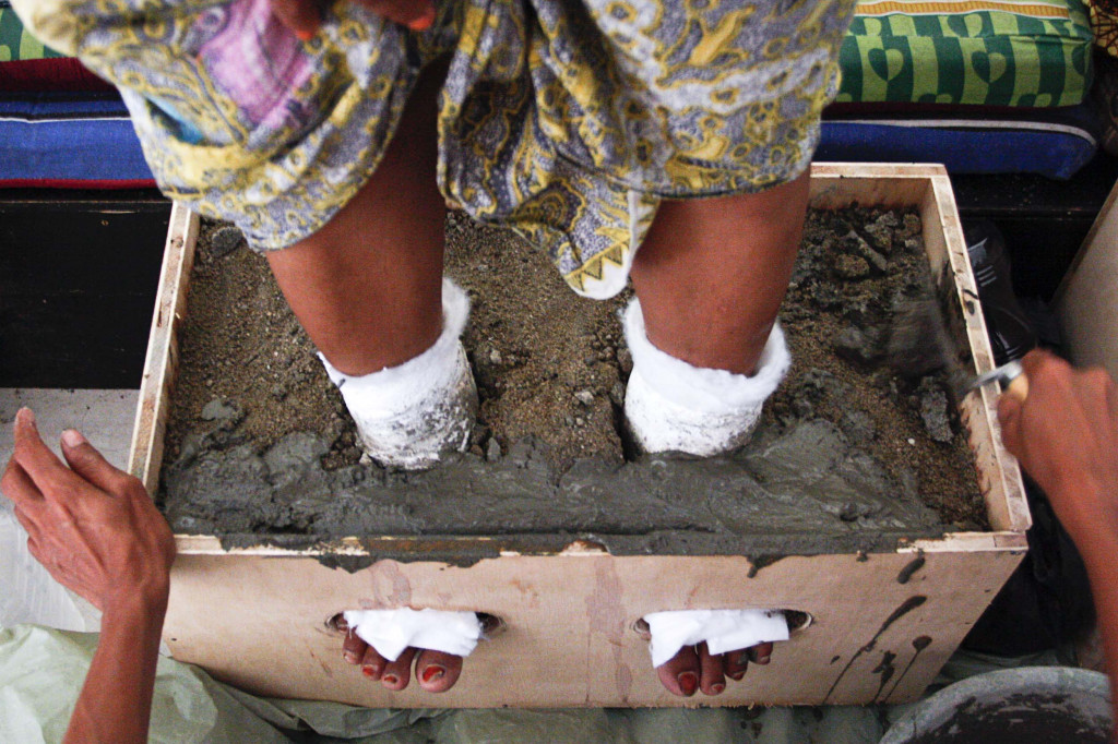 Rabu 13 April 2016, aksi para petani mengecor kaki ini sudah memasuki hari kedua. Dani, satu dari perempuan itu, menceritakan aksi ini merupakan ide mereka sendiri. Aksi ini merupakan bentuk protes petani terhadap pendirian pabrik semen PT Semen Indonesia.