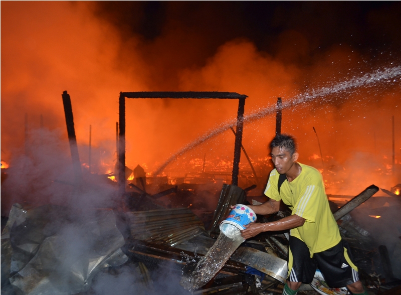 Kondisi rumah yang sebagian besar semi permanen membuat api cepat membesar, sehingga menyulitkan petugas pemadam kebakaran menguasai si jago merah.