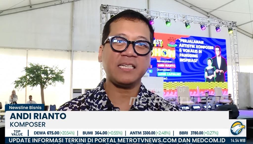 Salah satu sesi yang menyedot perhatian pengunjung adalah talkshow bertema perjalanan artistik bersama komposer Andi Rianto dan penyanyi Angie Carvalho, yang berbagi kisah tentang kecintaan dan ketekunan di dunia musik.