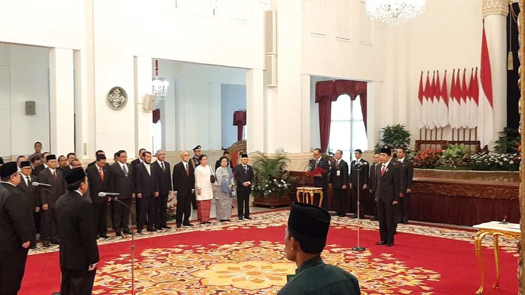 Suasana pelantikan Yudian Wahyudi menjadi kepala Badan Pembinaan Ideologi Pancasila (BPIP). Foto: Nur Azizah/Medcom.id