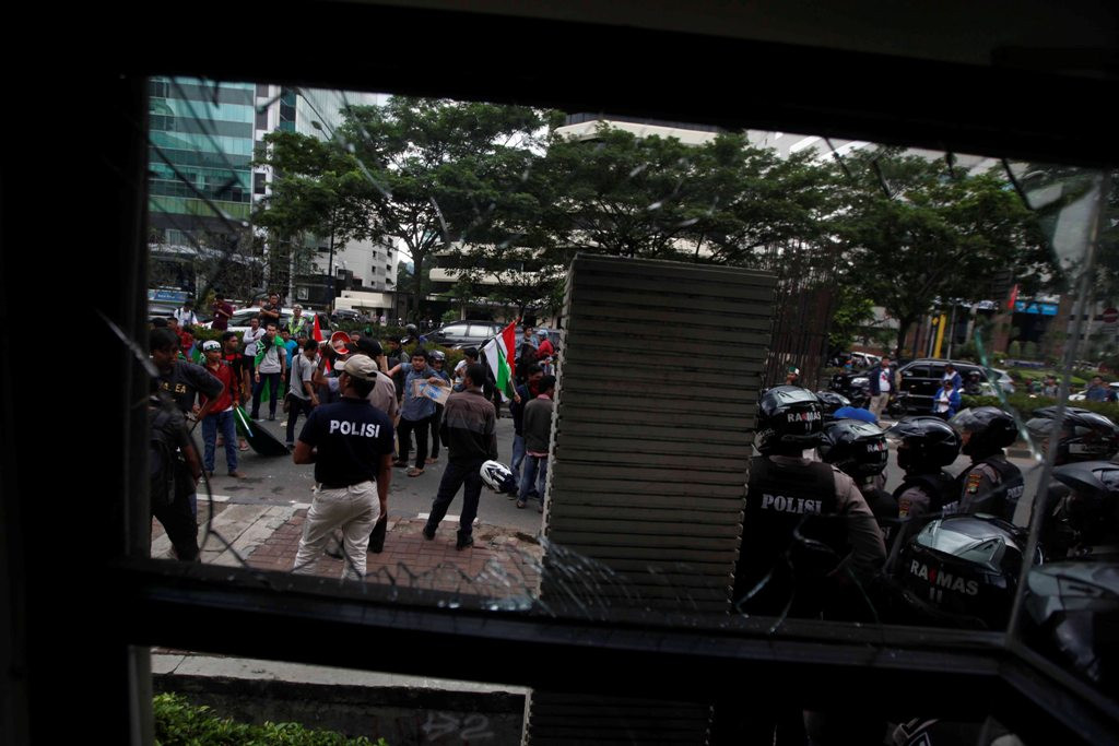 Polisi sempat melempar gas air mata untuk membubarkan massa. Tapi itu tak menyurutkan aksi pengunjuk rasa. Bahkan tindakan mereka cenderung anarkistis.