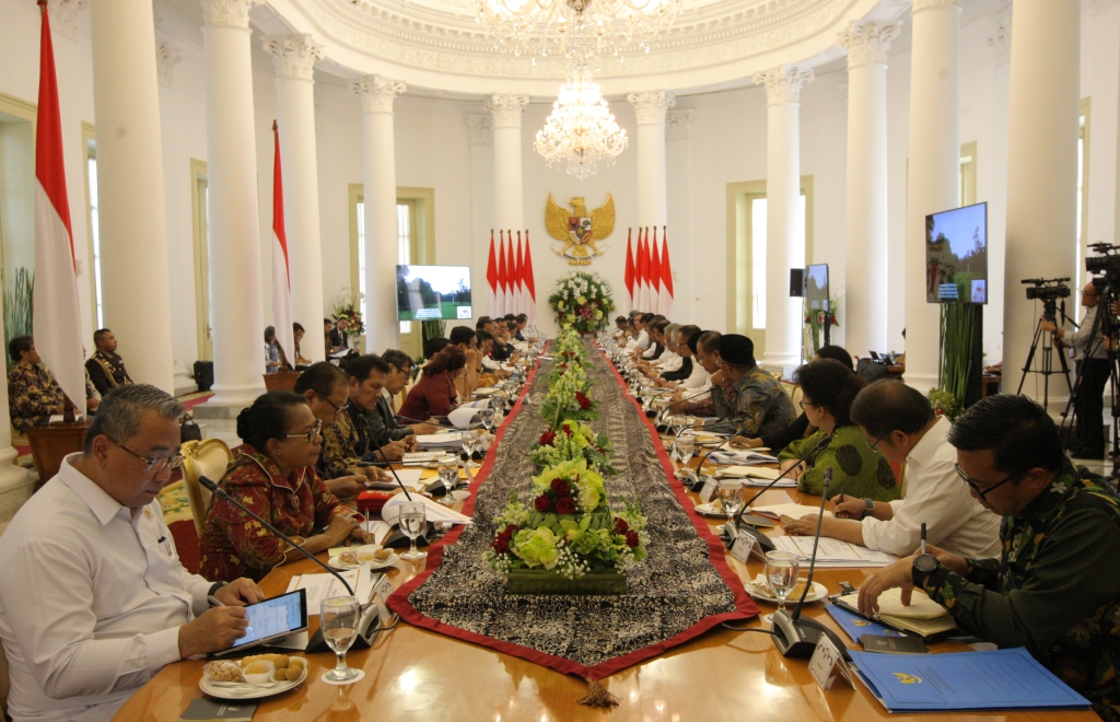 Bogor: Presiden Joko Widodo menggelar sidang kabinet paripurna di Istana Kepresidenan Bogor, Jawa Barat. Sidang membahas mengenai rancangan anggaran pendapatan dan belanja negara (RAPBN) anggaran 2019.