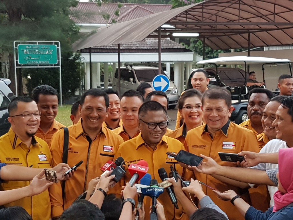 Bogor: Sejumlah pimpinan DPP dan DPD Partai Hanura dipimpin sang Ketua Umum Oesman Sapta Odang (OSO) menemui Presiden Joko Widodo di Istana Kepresidenan Bogor, Rabu sore, 24 Juli 2019. Pertemuan tersebut berjalan santai.