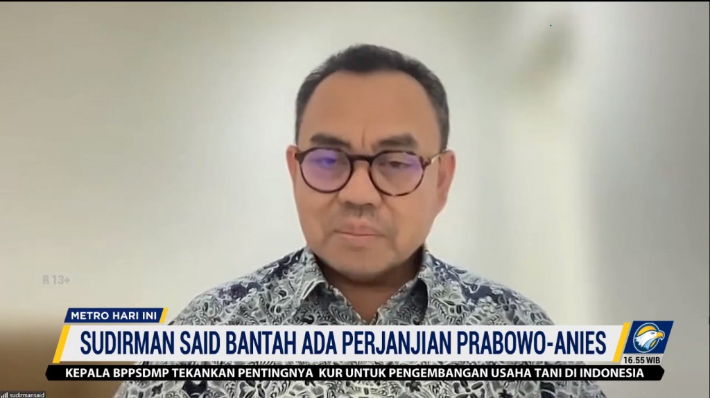 "Tidak masuk akal ada perjanjian yang mengatakan bahwa dia (Anies Baswedan) dilarang maju menjadi calon presiden sampai dengan tahun tertentu," ujar perwakilan Anies di Koalisis Perubahan, Sudirman Said, dikutip dalam tayangan