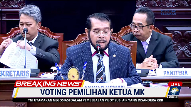 “Sembilan surat suara telah disediakan, dalam pemungutan suara ini, proses pemungutan suara akan saya pandu. Untuk itu saya akan memanggil nama-nama hakim konstitusi secara berurutan,” kata Ketua MK