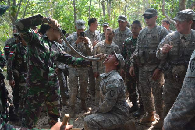 Para prajurit AS diajari menguliti ular dan meminum darah ular kobra.