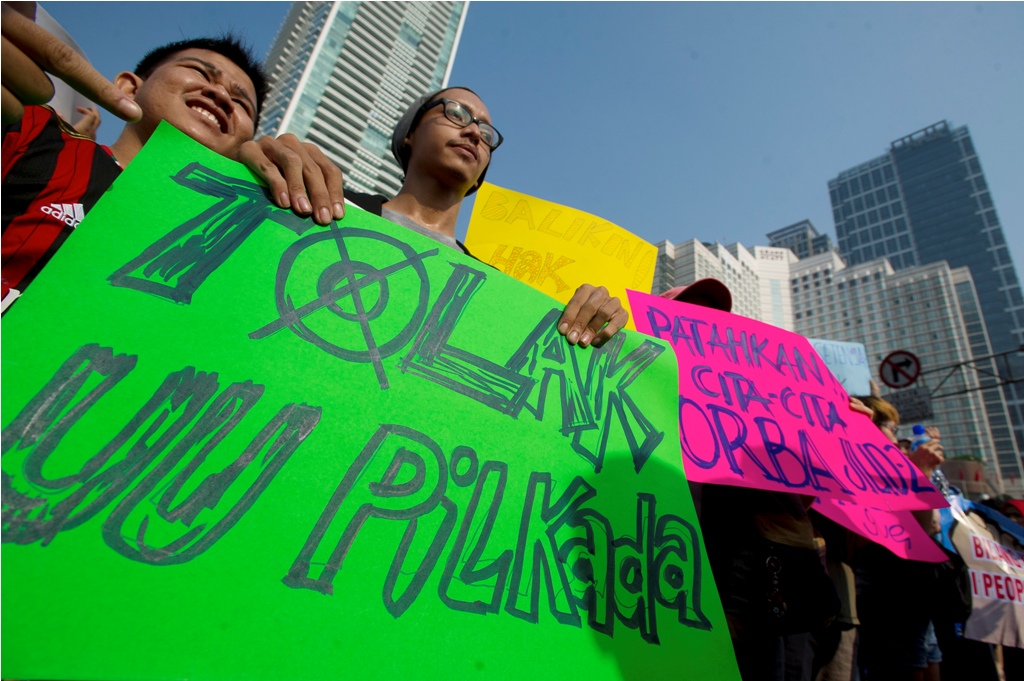 Hak mencoblos langsung gubernur dan bupati/wali kota itu direnggut setelah DPR RI mengetuk palu Undang-Undang Pilkada. Ditambah lagi, ekspresi kekecewaan warga akibat pengesahan UU itu semakin dibatasi, contohnya rumor pemblokiran #ShameOnYouSBY di Twitter.