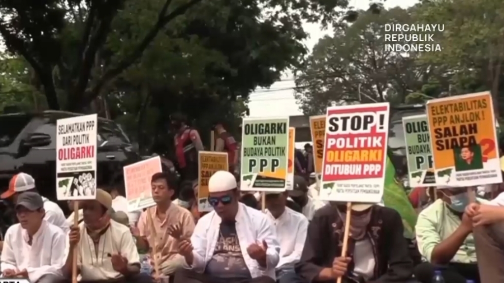 Partai Persatuan Pembangunan (PPP), Menteng, Jakarta Pusat. Lantunan doa mereka mengarah pada tuntutan mundurnya Suharso Monoarfa sebagai ketua umum PPP.