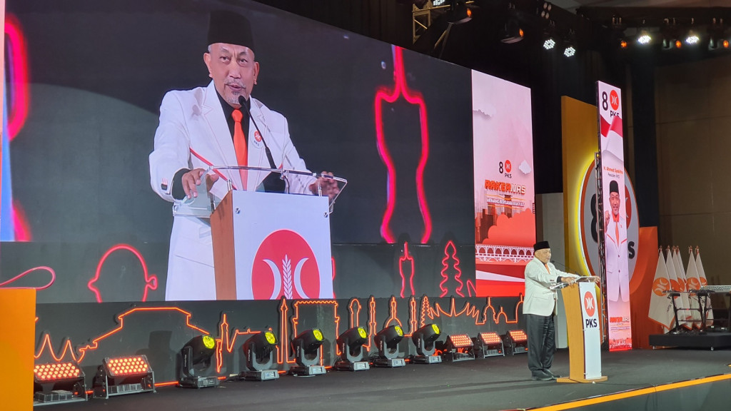 PKS Habib Aboe Bakar Alhabsy disela Rapat Kerja Nasional (Rakernas) PKS di The Sultan Hotel & Residence, Jakarta Pusat, Sabtu malam, 25 Februari 2023.