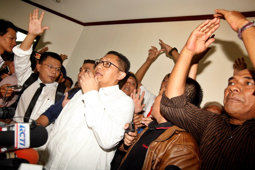 "Allahu Akbar," gema ibu-ibu pendukung Anas yang tergabung dalam Perhimpunan Pergerakan Indonesia. Mereka tampak senang saat vonis delapan tahun itu dibacakan.