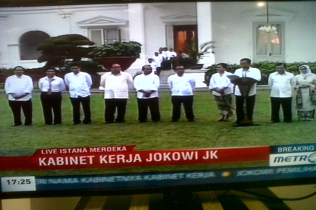 medcom.id, Jakarta: Kabinet pemerintahan Presiden Joko Widodo dan Wakil Presiden Jusuf Kalla akhirnya diumumkan di kompleks Istana Merdeka Jakarta, Minggu (26/10/2014). Kabinet yang disebut Kabinet Kerja ini terdiri dari 34 kementerian dan Bappenas.