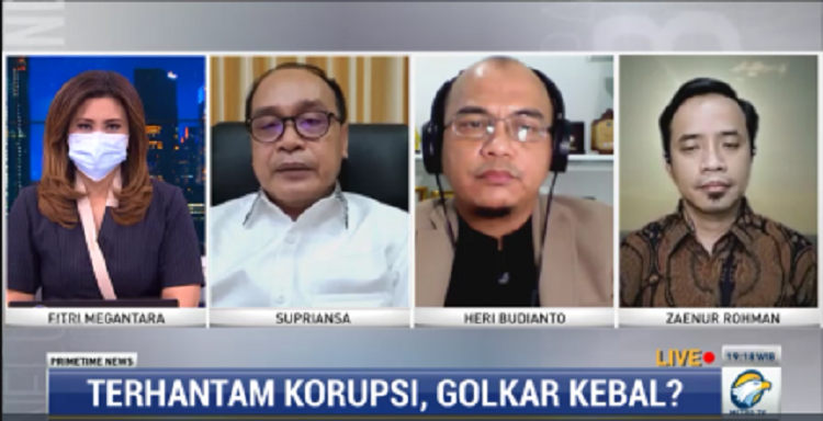 Jakarta: Peneliti Pusat Kajian Anti Korupsi (PUKAT) UGM Zaenur Rohman mengkritisi langkah Partai Golkar yang seakan lepas tangan terhadap kasus korupsi yang menimpa kadernya. Hal ini ia utarakan dalam program Primetime News Metro TV, Jumat, 22 Oktober 2021.