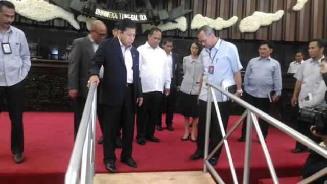 Penyambutan Raja Salman di Gedung DPR terbilang heboh. Sejak minggu lalu, baik tangga khusus hingga bunga-bunga telah dipersiapkan.