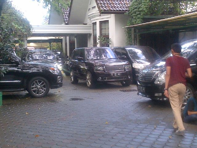 Mobil datang beriringan di tengah hujan deras, sekira pukul 14.00 WIB. Uniknya, mobil-mobil itu sebagian besar hanya dibawa sopir, tanpa juragan. Rupanya, Agung cs `menumpuk` dalam satu mobil Alphard.