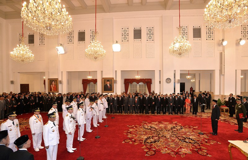 Sebelum dilantik, para Gubernur dan Wakil Gubernur terpilih mengikuti prosesi yang dimulai dari Istana Merdeka. Di Istana Merdeka, mereka menerima penyerahan petikan Keputusan Presiden oleh Presiden kepada masing masing Gubernur dan Wakil Gubernur terpilih.