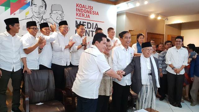 "Setelah daftar ke KPU saya dan KH Ma`ruf terus berkomunikasi bersama para ketua umum partai dan mendapat masukan dari tokoh masyarakat. Kini saya perlu umumkan bahwa ketua tim kampanye nasional adalah erick tohir," kata Jokowi di posko rumah Cemara, Menteng, Jakarta Pusat, Jumat 7 September 2018.