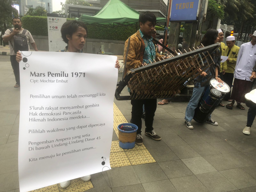 Jakarta: Berbagai kelompok warga di DKI Jakarta, Semarang, Brebes, dan Jombang, Jawa Tengah, menggelar pawai budaya dan pentas seni untuk mempopulerkan kembali lagu Mars Pemilu ciptaan Mochtar Embut. Lagu yang diperkenalkan pertama kali pada 1971 itu dinilai mengandung makna yang dalam, sehingga efektif menyosialisasikan kegiatan pemilu kepada masyarakat.