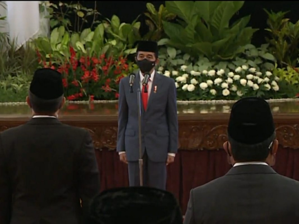 Presiden Joko Widodo melantik lima menteri dan enam wakil menteri hari ini. Mereka adalah Tri Rismaharini sebagai Menteri Sosial, Sakti Wahyu Trenggono sebagai Menteri Kelautan dan Perikanan, dan Yaqut Cholil Quomas sebagai Menteri Agama.