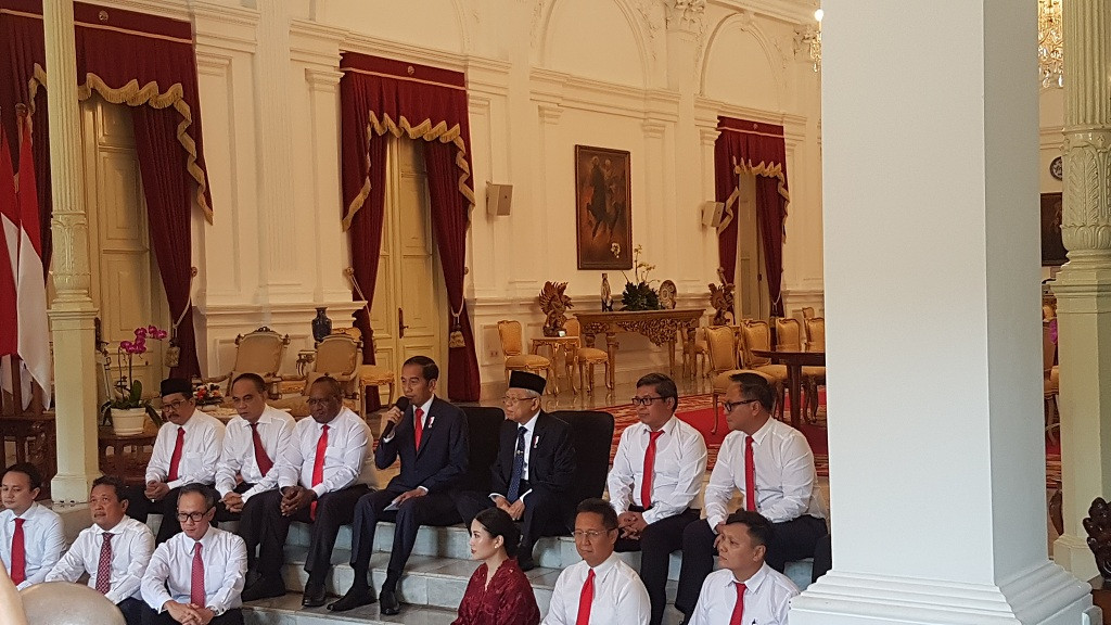 Jakarta: Presiden Joko Widodo mengumumkan 12 wakil menteri Kabinet Indonesia Maju. Pengumuman disampaikan di tangga Istana Merdeka, Jakarta, Jumat, 25 Oktober 2019.