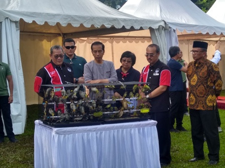 Bogor: Presiden Joko Widodo meremiskan Festival dan Pameran Buruang Berkicau 'Piala Presiden Jokowi' tahun 2018. Festival ini berlangsung di Kebun Raya Bogor, Minggu, 11 Maret 2018.