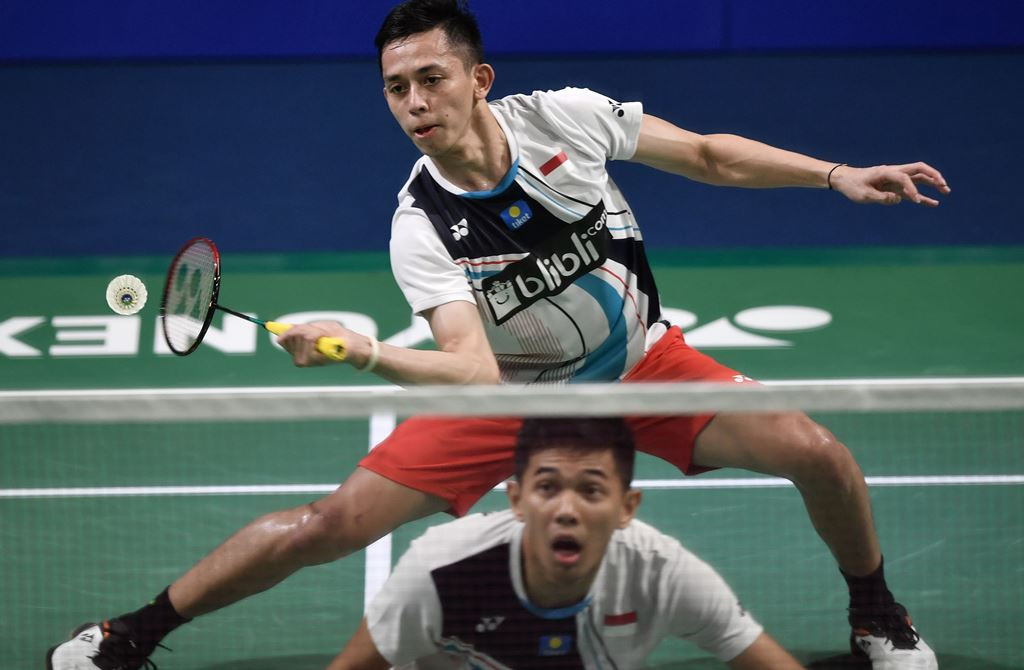 Fajar/Rian dipaksa mengakui ketangguhan Kamura/Sonoda dalam waktu 36 menit. Mereka takluk lewat straight game dengan skor 21-15 dan 21-19.