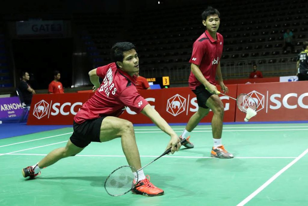 Angga/Ricky yang merupakan unggulan kedua sukses menaklukkan Supak Jomkoh/Natdanai Uakoolwarawat dengan skor, 21-12 dan 21-16. Sedangkan, Berry/Rian berhasil mengalahkan Bodin Issara/Nipitphon Puangpuapech dengan skor, 21-17 dan 21-14.