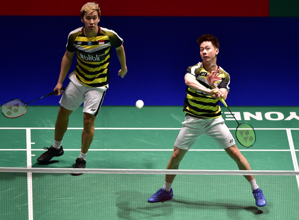 Marcus Fernaldi Gideon (kiri) dan Kevin Sanjaya Sukamuljo (AFP/Kazuhiro Nogi)