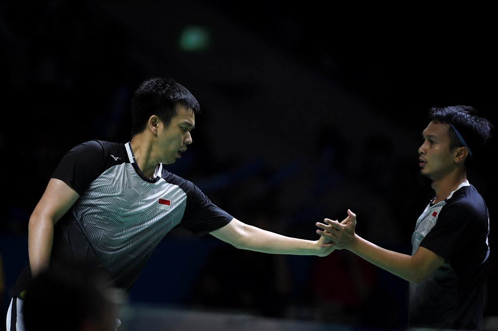 Beruntung bagi Ahsan/Hendra, mereka berhasil mengunci kemenangan pada game pertama setelah bola dari pasangan Jepang dinyatakan keluar oleh wasit lewat challenge. Skor akhir 22-20 untuk kemenangan Ahsan/Hendra.