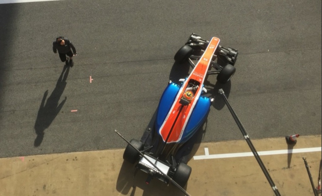Momen saat mobil yang dikendarai Rio Haryanto tergelincir di Sirkuit Catalunya (Foto:Twitter/@RachelBrookesTV)