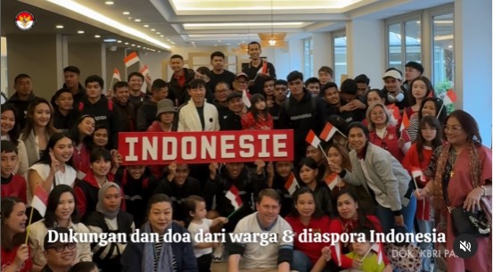 "#DubesRIParis #DubesOemar beserta seluruh masyarakat dan diaspora Indonesia di Prancis turut mendukung dan doakan agar tim nasional U-23 Indonesia dapat kembali membawa Sepak Bola Indonesia ke Olimpiade, setelah absen sejak Olimpiade Melbourne 1956," tulis keterangan video di akun Instagram @indonesiaparis tersebut.