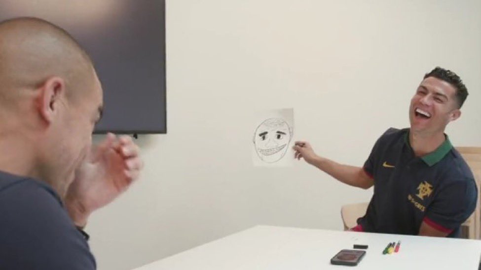Diusir Ronaldo, Pepe hanya cengar-cengir dan kembali ke tempat duduknya untuk menggambar wajah Ronaldo. Hingga akhirnya Ronaldo menunjukkan karyanya sambil tertawa terbahak-bahak ke arah bek 39 tahun itu. Melihat hasil karya Ronaldo, Pepe tersenyum kecut dan sedikit protes.