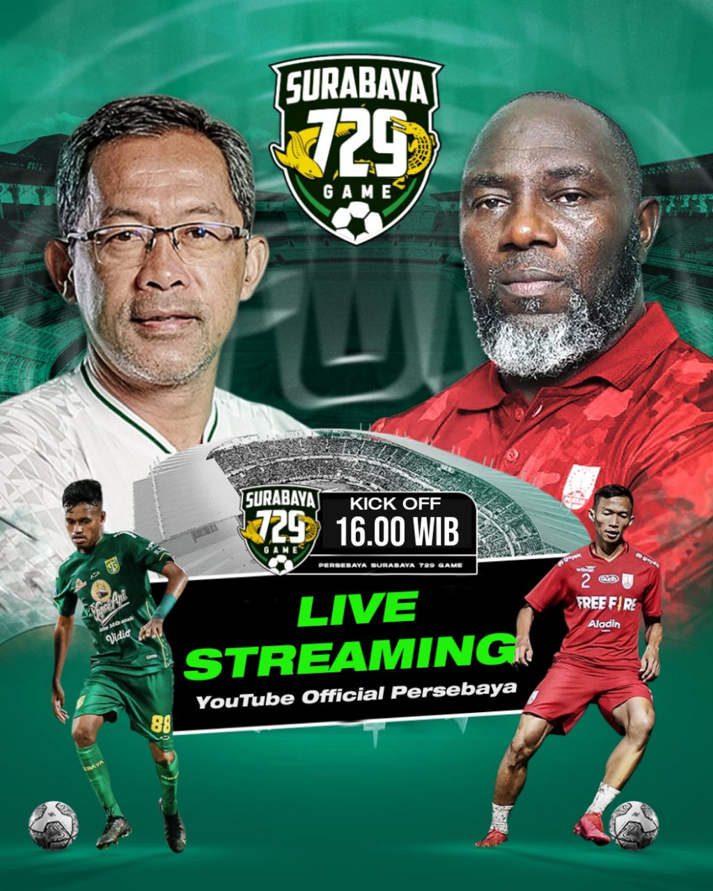 Pertandingan sore nanti dapat disaksikan melalui live streaming di kanal YouTube Official Persebaya.
