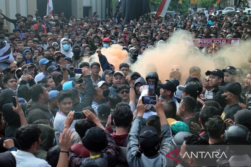 Para Suporter pendukung Persis yang melakukan aksi damai di depan Mess Persis Solo tersebut mendapat penjagaan ketat aparat Kepolisian Polresta Surakarta. Setelah puas mendapat jawaban Manajemen Persis, para suporter membubarkan diri dengan tertib. (ANT)