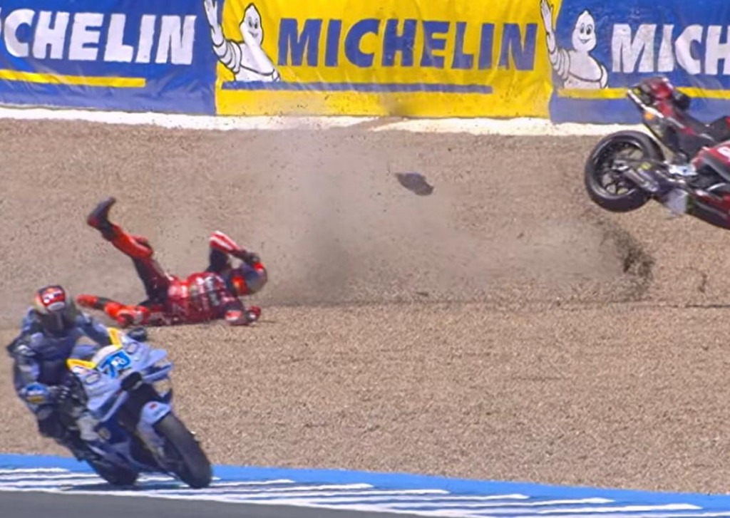 Pembalap pabrikan Ducati tersebut terjatuh di balapan utama, menambah rangkaian momen krusial sepanjang akhir pekan. Sehari sebelumnya, ia juga sempat terjatuh di sesi Sprint Race namun bedanya Marquez bisa melanjutkan balapan dan berakhir menang.