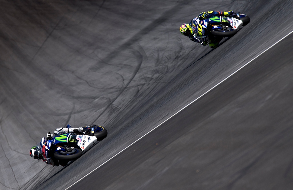 Kedua pembalap Yamaha ini bersaing ketat untuk mengincar finis di posisi ketiga. Situasi ini terjadi lantaran posisi pertama dan kedua sudah diamankan duo pembalap Ducati, Andrea Iannone dan Andrea Dovizioso.