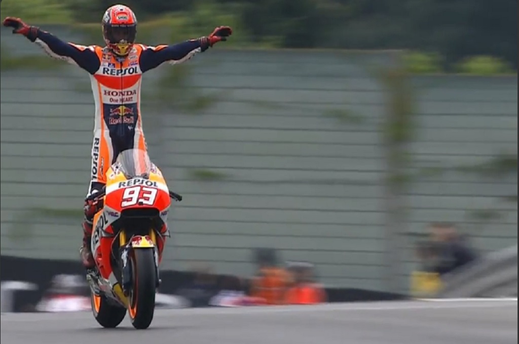 Hasilnya, ia sukses mempertahankan posisi terdepan sampi finis. Ia berhasil juara diikuti oleh Ccrutchclow dan Dovizioso. Ini menjadi kemenangan keempat beruntun Marquez di GP Jerman sejak naik kelas ke MotoGP.