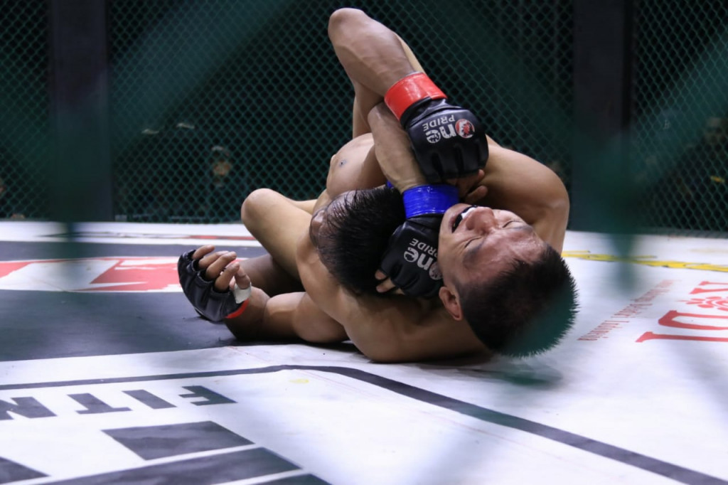 Teknik kuncian rear naked choke membuat Jeka kewalahan dan menyerah. Angga pun memastikan diri merebut sabuk gelar lightweight dari tangan Jeka.