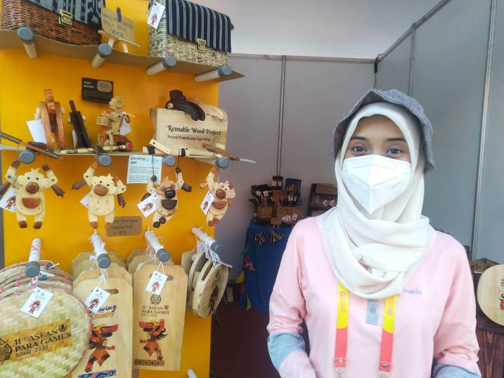 Kemudian pada sisi lain stan, dipamerkan juga semacam boneka monyet kecil dan berbagai model kipas tangan dengan logo ASEAN Paragames 2022. Menurut Sita, pengunjung yang melihat barang dagangannya memberi respons positif dan beberapa dari mereka juga berasal dari luar negeri.