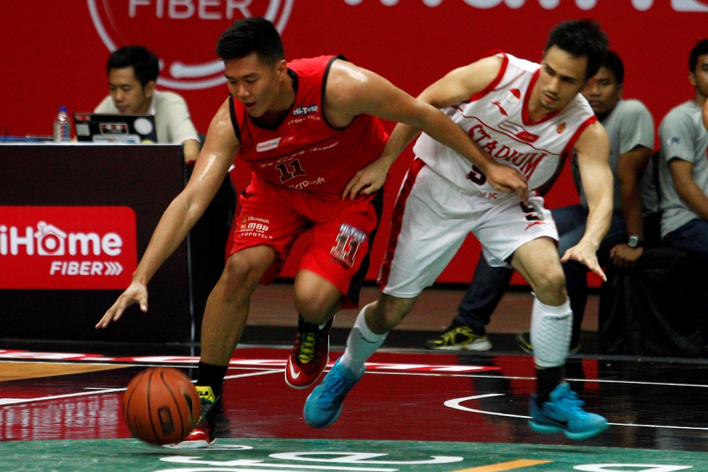 Berlaga di GOR UNY pada lanjutan NBL Seri VIII, Yogyakarta, Jumat 13 Maret 2015, Aspac tidak bisa memainkan dua bintangnya, Xaverius Prawiro dan Mario Gerungan.