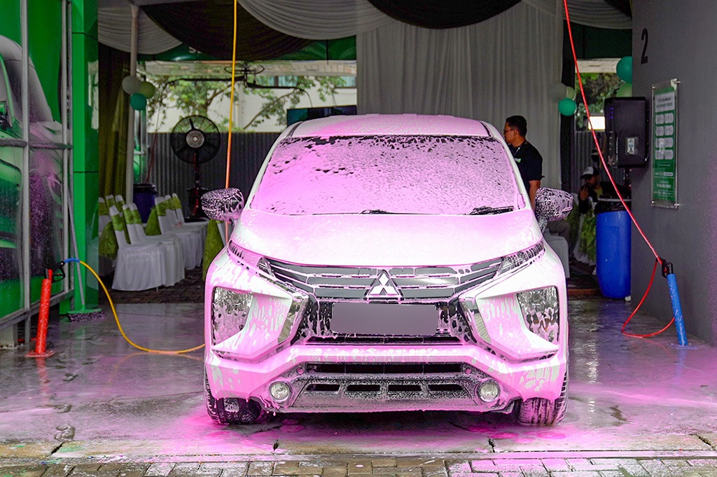 Aman menjelaskan setelah kendaraan memasuki area pencucian, pemilik kendaraan akan menemukan peralatan cuci yang lengkap dan mudah dipakai. Dengan teknologi Touchless Shampoo Grass, cukup dengan menyemprotkan shampoo khusus, kotoran pada kendaraan bisa hilang tanpa perlu menyentuh permukaan kendaraan sama sekali.