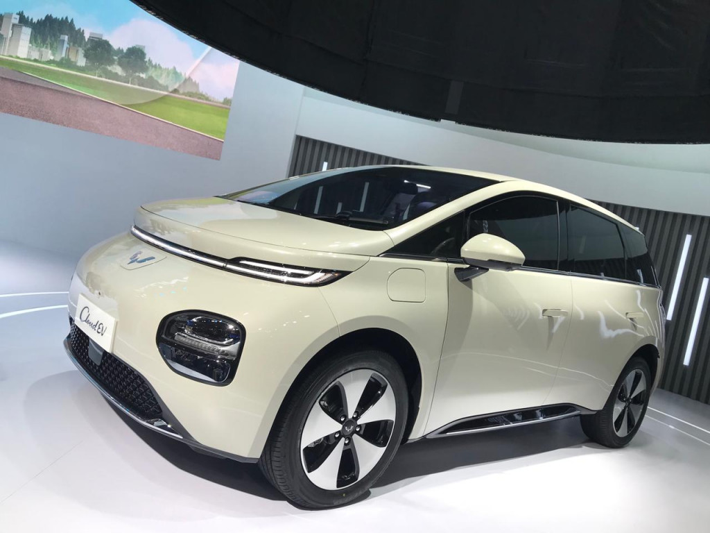 Cloud EV juga memiliki lekukan halus di sisi samping yang mengintegrasikan lampu depan dan belakang sebagai perpaduan estetika teknologi yang minimalis. Sesusai dengan namanya Cloud (awan), mobil ini menampilkan nuansa kelembutan yang memikat mata.