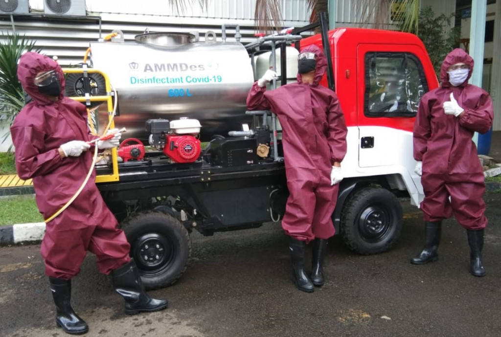 Direktur Industri Maritim, Alat Transportasi, dan Alat Pertahanan (IMATAP) Kemenperin, Putu Juli Ardika, menjelaskan sudah ada AMMDes yang berhasil merancang sebagai Water Tank dengan fasilitas penyemprot cairan disinfektan untuk penanganan penyebaran Covid-19. Water tank yang diangkut pun cukup besar dengan tangki berkapasitas 600 liter.
