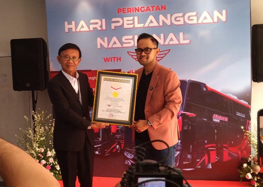 Jakarta: Momen bahagia dirasakan oleh Juragan99 Trans pada Hari Pelanggan Nasional 2024. Perusahaan yang bergerak di bidang transportasi darat sekaligus bagian dari J99 Corp tersebut menerima penghargaan dari Museum Rekor Dunia Indonesia (MURI) untuk pencapaian "Sleeper Bus Double Decker Pertama di Indonesia.”