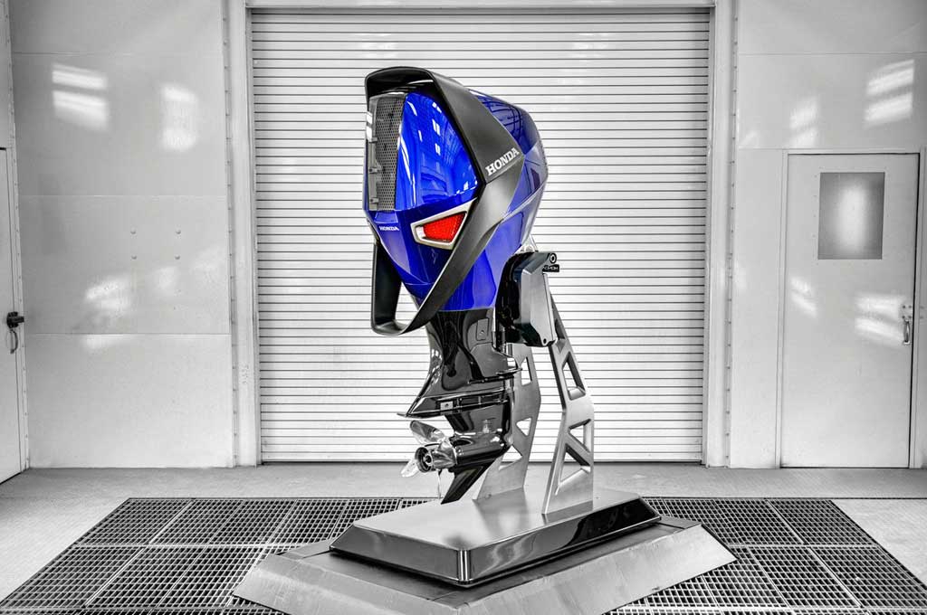 Pengaruh inspirasi Acura NSX terasa kental terhadap mesin kapal ini, terlihat dari kelir warna biru dan intake black honeycomb mesh, sama seperti yang ditemukan di model supercar kepunyaan Honda tersebut.