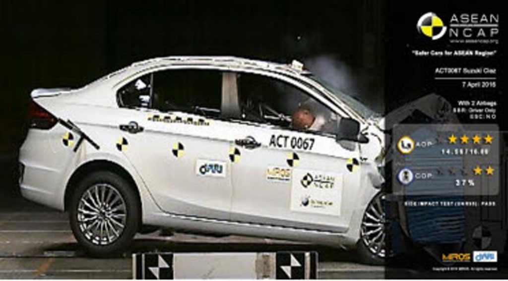 Asean New Car Assessment Program (Asean NCAP) baru-baru ini menguji dua mobil racikan Suzuki yang juga beredar di Indonesia, yakni Ciaz dan Ertiga. Ciaz adalah sedan kompak yang dikenalkan tahun lalu, dan Ertiga yang diuji adalah model terbaru yang alami penyegaran tampilan.