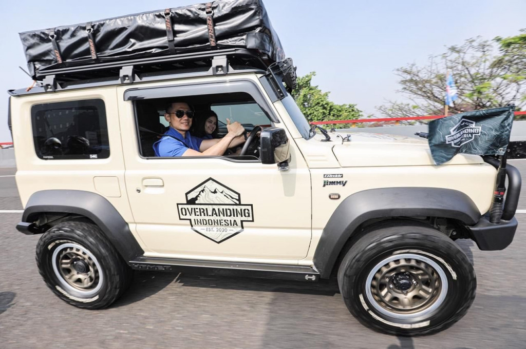 Putra Susilo Bambang Yudhoyono ini tampak mengendarai Jimny berwarna krem bersama istrinya Annisa Pohan. Mobil ini juga tampak sudah dimodifikasi dengan sejumlah aksesoris seperti lampu tembak, bar besi di depan, roof rack, dan ban yang bisa digunakan untuk offroad.