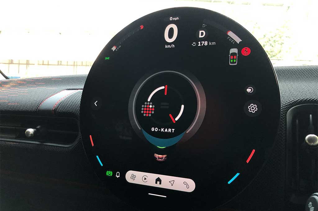Dan benar saja, ketika mode tersebut Kami ubah ke mode Go-Kart, bagian pertama yang paling terdengar adalah raungan knalpot khas racikan JCW yang cukup agresif. RPM tertahan di putaran tinggi, dan pengaturan mode manualnya sangat bisa dirasakan hanya dengan rombol di belakang kemudi (paddleshifting).