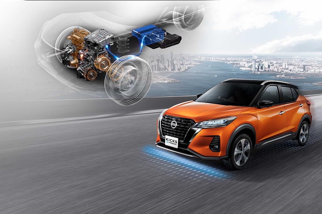 Seperti mobil listrik lainnya, All New Kicks e-Power merupakan mobil yang digerakan dengan motor listrik dan disokong oleh baterai. Tetapi baterai di sini menampung daya listrik bukan hasil pengecasan dengan pencatu daya, namun disokong oleh mesin bensin.
