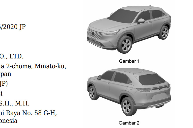 Jenama asal Jepang ini diketahui sudah mendaftarkan sejumlah desain eksterior dan interior HR-V kepada Direktorat Jenderal Kekayaan Intelektual (DJKI) Kementerian Hukum dan HAM Indonesia. Desain ini kemudian diumumkan melalui Berita Resmi Desain Industri No. 17/DI/2021 yang dirilis pada 7 Juni 2021.
