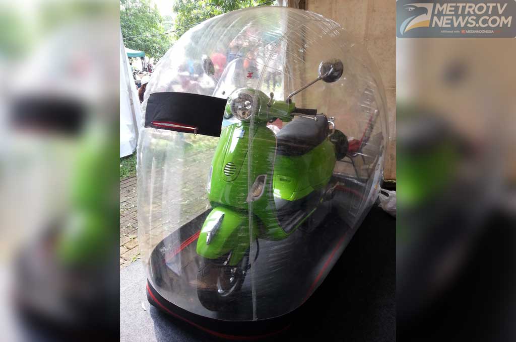 "Ini buat melindungi kendaraan agar tidak berdebu, terutama ketika habis di cuci. Banyak manfaatnya salah satunya juga agar tidak berdebu, tidak jamuran, atau biar tidak ada baret halus," jelas Rendra pemilik bubble cover M-154.